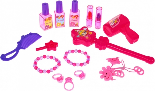 Das Set ist für sicheres und fröhliches Spielen konzipiert – es enthält Spielkosmetik, einen Kinderföhn, einen Kamm, Schmuck und einen Zauberstab, mit dem sich jedes Mädchen wie eine Prinzessin fühlen kann. Die kompakten Abmessungen machen es zu einem tollen tragbaren Spielzeug für unterwegs und zuhause.