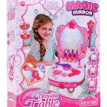 Der Spiegel leuchtet in Blau, Rot und Rosa und verleiht dem Schminken eine magische Atmosphäre, die Kinder zu fantasievollem Spiel inspiriert.