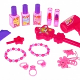 Dazugehören ein Zauberstab, Föhn, Kamm, Schlüssel für die Schublade, Spiel-Parfümflakons und Lippenstifte, Haargummis, Armbänder und Ringe.