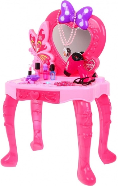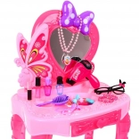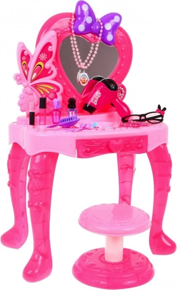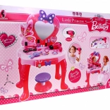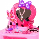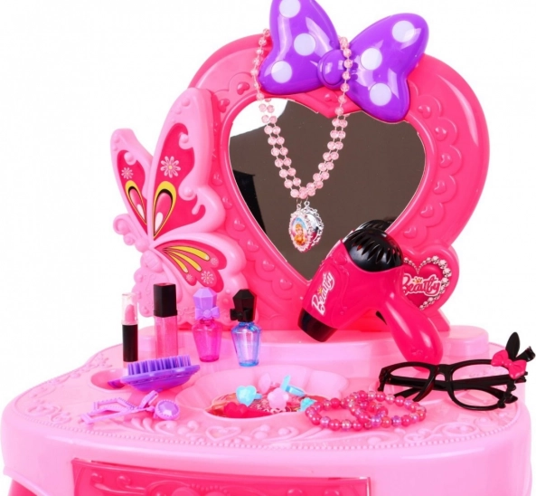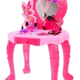 Die Schleife über dem herzförmigen Spiegel leuchtet und blinkt, begleitet von einer Melodie. So erleben Kinder ein realistisches und fesselndes Spiel im Beautysalon.
