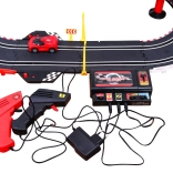 | - 2 Rennautos, - 2 Fernbedienungen, - Strecke in Segmenten, - Schranken, - Verkehrsschilder, - Stromversorgung, | |
