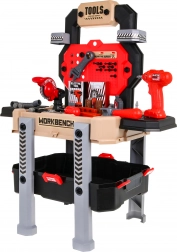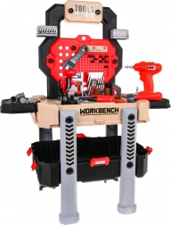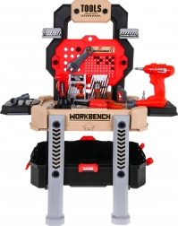 Diese realistische Kinder-Werkbank kombiniert einen übersichtlichen Ständer mit einem geräumigen Koffer, sodass das Werkzeug stets griffbereit und schnell aufgeräumt ist. Dank 78 Elementen und der funktionsfähigen Bohrmaschine/Schraubendreher üben Kinder Schrauben, Sägen und Montieren und lernen grundlegende Prinzipien der Werkstattarbeit kennen.