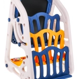 Auf der Rückseite der Tafel befinden sich Bücherregale, die Platz für die Aufbewahrung von Kinderliteratur bieten. Das Produkt ist mit abgerundeten Kanten sicher, die Schutz beim Spielen bieten. Die einfache Montage und Demontage erfolgt nach beiliegender Anleitung.
