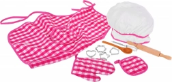 Sicherheit und Sauberkeit in der Küche sind das Wichtigste. Mit diesem Set kann ihr kleiner Helfer seine Kleidung mit einer Schürze und seine Haare mit einer Haube schützen.