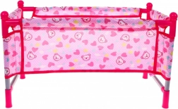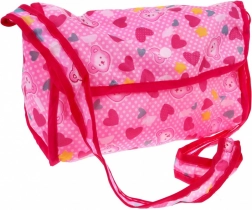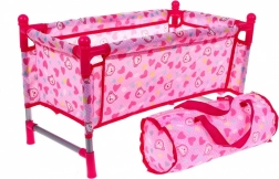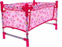 Das für Puppen entworfene Bettchen ist ideal für Rollenspiele rund um die Babybetreuung. Es besteht aus rosa Stoff mit Herz- und Bärenmotiven, die jedes Kind begeistern.
