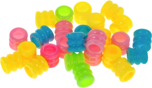 • Umfangreiche Ausstattung: Perlen in verschiedenen Formen, Buchstaben, Ringe, Schnüre, Kamm und bebilderte Anleitung