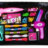 Komplette Ausstattung zum Verzieren der Haare und zum Herstellen von Armbändern und Halsketten – Perlen, Ringe, Buchstaben, Schnüre, Kamm sowie praktische Werkzeuge für müheloses Basteln.