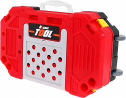 Der praktische Koffer hält alle Werkzeuge griffbereit. Enthalten sind Helm, Brille und Maske für ein noch realistischeres und sichereres Spiel.
