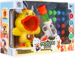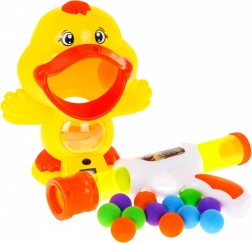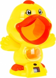 Das niedliche Ziel in Entenform mit offenem Schnabel sammelt die Kugeln ein, reagiert bei Treffern mit Ton und erleichtert die fortlaufende Punktezählung.