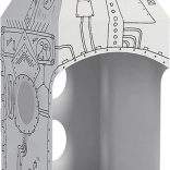 Nach dem Zusammenbau entsteht eine robuste Rakete mit Öffnungen und Details, die zum Entdecken einladen. Perfekt als Spielecke und Dekoration fürs Kinderzimmer.