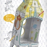 Die Rakete bietet freie Flächen, die sich für Buntstifte, Filzstifte und Farben eignen. Kinder gestalten ihr eigenes einzigartiges Design und können direkt danach zu einer Weltraummission aufbrechen.