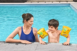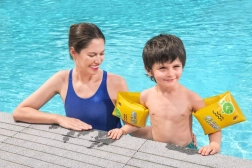 Die Schwimmflügel BESTWAY Swim Safe ABC sind ein großartiges Hilfsmittel für Kinder im Alter von 3–6 Jahren bei ihren ersten Schritten im Wasser. Die Doppelkammer-Konstruktion sorgt für bessere Stabilität und sicheren Auftrieb, während das weiche und robuste PVC-Material die Bewegung nicht einschränkt.
