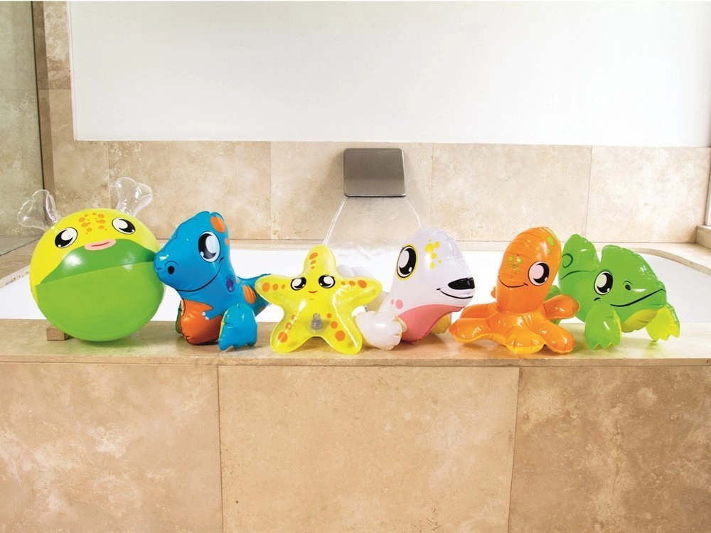 Gefertigt aus robustem, leicht zu reinigendem Vinyl, angenehm im Griff und für den täglichen Gebrauch geeignet. Das fröhliche Design mit kräftigen Farben fördert die Fantasie und eine positive Beziehung zum Wasser.