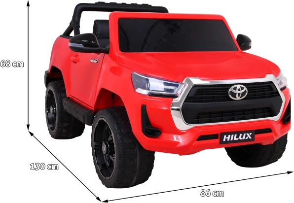 Das lizenzierte Design des legendären Pick-ups TOYOTA Hilux im Kinderformat begeistert mit realistischen Details, zu öffnenden Türen und wählbarem 4x4-/2x2-Antrieb. Der starke 12V/14Ah-Akku und vier 45-W-Motoren sorgen für sanftes Anfahren und genügend Kraft für Fahrten im Garten und auf festem Untergrund.
