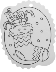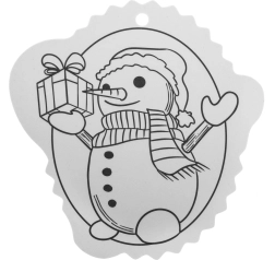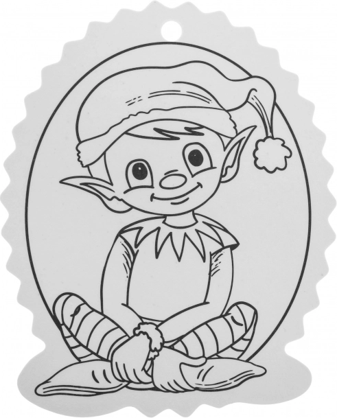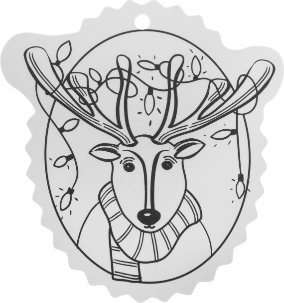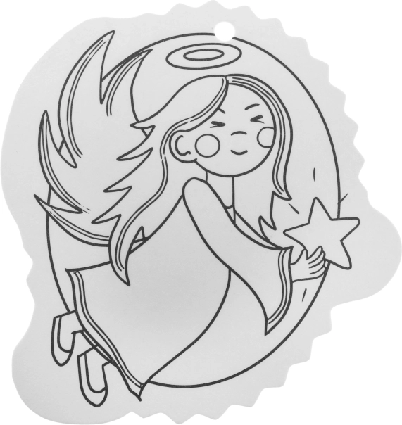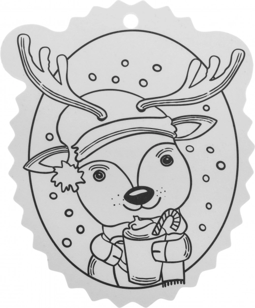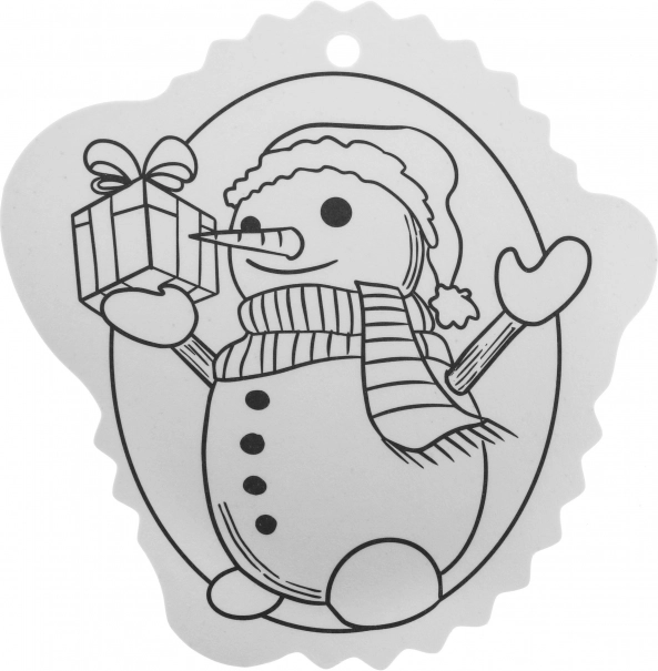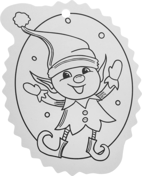 Schwarz-weiße Konturen erleichtern das Ausmalen und eine Öffnung an der Oberseite sorgt für schnelles Aufhängen am Baum oder an Geschenken.