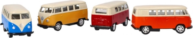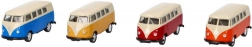 Der Volkswagen T1 MicroBus ist ein perfektes Sammlermodell für Liebhaber klassischer Fahrzeuge. Dieses Metallmodell verfügt über Gummiräder, die verbesserte Fahreigenschaften gewährleisten. Dank des Schwungradmechanismus bewegt sich das Fahrzeug nach ausreichendem Rückwärtsziehen von selbst vorwärts.