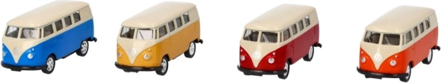 Der Volkswagen T1 MicroBus ist ein detailgetreues Modell, das jeden Retro-Design-Liebhaber begeistern wird. Dieses Metallmodell mit Gummirädern ist ideal sowohl für Sammlerzwecke als auch für den Spielspaß von Kindern. Dank des Schwungradmechanismus reicht es, das Fahrzeug zurückzuziehen, und es fährt von selbst vorwärts.