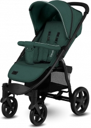 Die großen EVA-Räder müssen nicht aufgepumpt werden, dämpfen Unebenheiten hervorragend, und die vorderen schwenkbaren Räder mit Arretierung halten die Spur auch auf rauerem Untergrund. Der ergonomische Schiebegriff mit Bezug in Eco-Leder liegt angenehm in der Hand und erleichtert die tägliche Bedienung. Selbstverständlich mit zentraler Bremse und reflektierenden Elementen für bessere Sichtbarkeit in der Dämmerung.