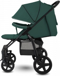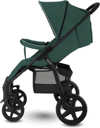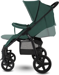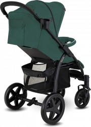 Der Kinderwagen lässt sich leicht auf kompakte Maße zusammenklappen; eine automatische Sicherung verhindert ein ungewolltes Aufklappen beim Tragen. Ein praktischer Einkaufskorb, Getränkehalter, Moskitonetz und Fußsack runden die Ausstattung für jeden Spaziergang ab.