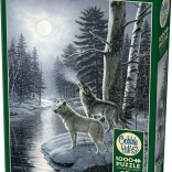 Lieben Sie anspruchsvolleres Puzzeln und originelle Motive? Dieses hochwertige Puzzle mit dem Motiv nächtlicher Wölfe sorgt für ein einzigartiges Erlebnis. Der spezielle Stanzschnitt mit unregelmäßigen Teilformen folgt keinem üblichen Raster und bietet dadurch eine höhere Schwierigkeit sowie langanhaltenden Spaß. Dank der beiliegenden Vorlage finden Sie sich zudem leicht in den einzelnen Bildbereichen zurecht.