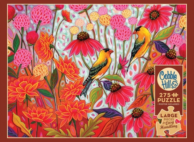 Tauchen Sie ein in die Welt des bunten Puzzles mit dem Stieglitz-Frühlingsmotiv. Dieses Puzzle enthält 275 extra große Teile, die für eine bessere Handhabung und Spaß für alle Generationen konzipiert sind.