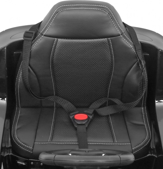 Das Musikpanel mit MP3, USB, AUX und TF/SD-Slot spielt Lieblingslieder ab, die LED-Beleuchtung vorne und hinten verleiht einen Premium-Look. EVA-Schaumräder dämpfen Vibrationen, hintere Stoßdämpfer erhöhen den Komfort. Der Sitz aus schwarzem Kunstleder mit stufenloser Verstellung und Mehrpunktgurt passt sich Kindern unterschiedlichen Alters an.