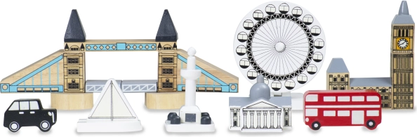 Diese wunderschönen Blöcke stellen berühmte Londoner Gebäude dar, wie die Tower Bridge, den Big Ben und das London Eye.