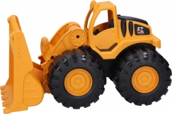 Dank Schwungradantrieb genügt ein Anschubser und das Fahrzeug fährt ganz ohne Batterien los. Der Baustellen-Look und die Ladeschaufel fördern die Fantasie und thematische Rollenspiele.