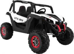 Die Sicherheit liegt in den Händen der Eltern dank 2,4-GHz-Fernbedienung mit drei Geschwindigkeiten und Notstopp-STOP-Funktion. Mit dem 2×4/4×4-Schalter passen Sie die Leistung an Gelände und Reichweite an. LED-Beleuchtung vorne und hinten erhöht die Sichtbarkeit und verleiht den authentischen Look eines echten UTV.