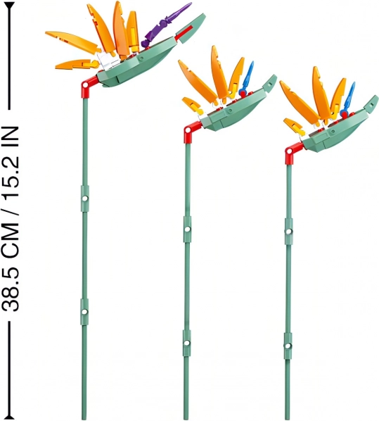 Der Baukasten ist für seine lebendige Farbkombination beliebt, die echte Blumen perfekt nachahmt. Die leuchtenden Orangetöne und Grüntöne ziehen sofort Aufmerksamkeit auf sich.
