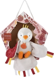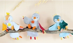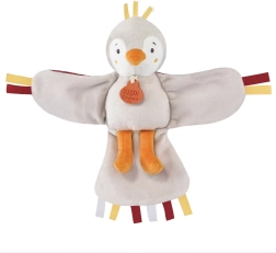 Dieser kuschelweiche Musikvogel in harmonischen Rottönen beruhigt mit seiner sanften Klangpräsenz und bietet viele Reize zum Entdecken. Raschelnde und texturierte Elemente sowie bunte Bändchen an Flügeln, Schwanz und Kopf fördern die Sinneswahrnehmung und die Feinmotorik.