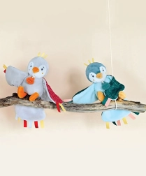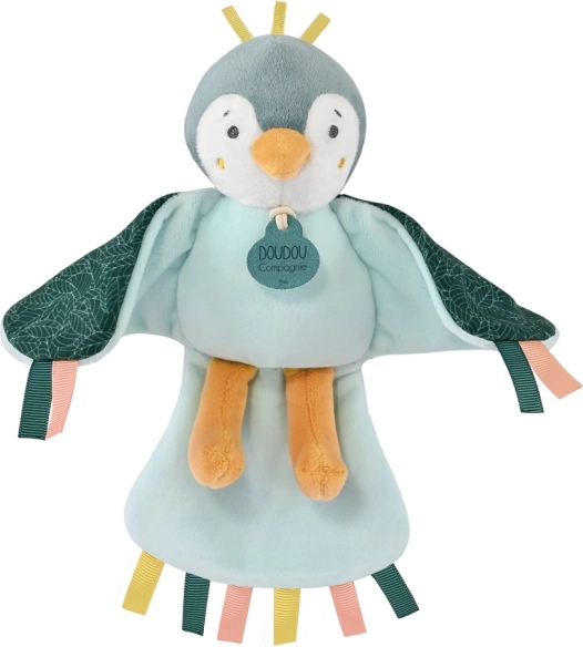 Der musikalische Plüschvogel der Marke Doudou ist so konzipiert, dass er das Baby perfekt beruhigt durch seine sanften Klänge und seine Weichheit. Er verfügt über bezaubernde Bänder an Flügeln, Schwanz und Kopf, die das Kind bedenkenlos greifen und darauf kauen kann, um so die Feinmotorik zu üben.