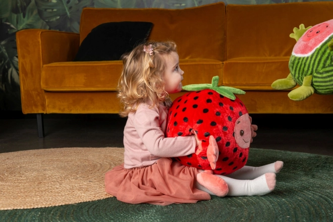 Wir präsentieren das Cozy Noxxiez Erdbeerwärmekissen, das als Kissen, Handwärmer und Plüschtier vielseitig einsetzbar ist, alles in einem. Dieses Produkt wurde entwickelt, um maximalen Komfort und Freude für jedes Kind zu bieten. Das Kissen hat an den Seiten zwei Öffnungen, die das Einlegen der Hände für eine angenehme Erwärmung oder als geheimes Versteck für kleine Gegenstände ermöglichen. Es erfreut nicht nur Kinder, sondern auch Erwachsene mit seinem zauberhaften, von Fruchtmotiven inspirierten Design.