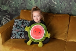 Gemütlicher Noxxiez Melone ist ein Plüschkissen, Handwärmer und treuer Freund in einem. Die weiche Textur und das verspielte Design machen dieses Kissen zum idealen Begleiter für Kinder auf Reisen und Zuhause.