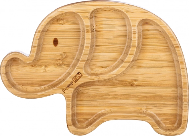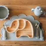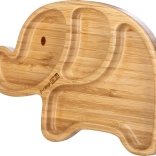 Stilvoller Kinderteller aus 100% Bambus in Elefantenform mit abnehmbarem Saugnapf für festen Halt auf dem Tisch. Er hat 3 praktische Fächer zur Trennung der Lebensmittel, ist frei von BPA, PVC, Phthalaten und Melamin und bietet einfache Reinigung sowie Robustheit für den täglichen Gebrauch.