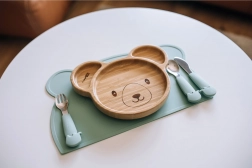 Der FreeON Teller in Koala-Form unterstützt selbstständiges Essen und macht jede Mahlzeit angenehmer. Der Saugnapf auf der Unterseite haftet sicher auf glatten Oberflächen und reduziert Kleckern am Tisch. Drei praktische Fächer helfen, Speisen zu trennen und eine abwechslungsreiche Ernährung zu fördern.