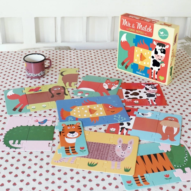 Mix & Match - Lustige Tiere von der Firma Magellan ist als ideales erstes Puzzle für Ihr Kind gedacht. Einfach verbindbare Tiere helfen, Konzentration und Kreativität zu entwickeln. Dieses Spiel, das Fantasieentwicklung bietet, ist auch ein hervorragendes Mittel zur Steigerung der manuellen Geschicklichkeit und Hand-Augen-Koordination.