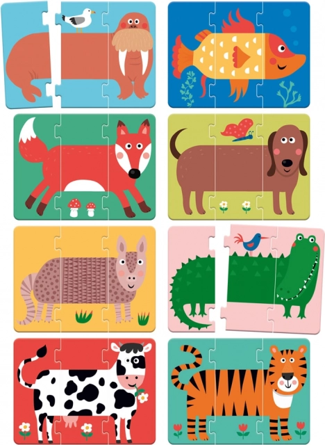 Das Set enthält 24 Teile mit den Maßen 8x18 cm, was eine optimierte Größe für kleine Kinderhände darstellt. Das Puzzle besteht aus hochwertigem Papier, das Sicherheit und Haltbarkeit beim Spielen gewährleistet. Das verspielte Design und die Möglichkeit, die Teile miteinander zu tauschen, bieten endlose Spielmöglichkeiten.