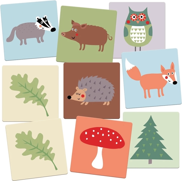 Großes Memo-Spiel mit Waldmotiven von Magellan für Kinder ab 3 Jahren. Enthält 16 stabile Karten in 12 × 12 cm und fördert Gedächtnis, Wahrnehmung und logisches Denken. Dank der zarten Pastellfarben und der einfachen Regeln ideal für das erste Familienspiel.