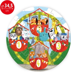 Dieses schöne runde Puzzle mit dem Motiv Tiere auf dem Riesenrad bringt Kindern spielerisches Lernen nahe. Durch die überschaubare Teileanzahl und das freundliche Design eignet sich das Puzzle perfekt für erste Erfolgserlebnisse und gemeinsame Momente mit den Eltern.