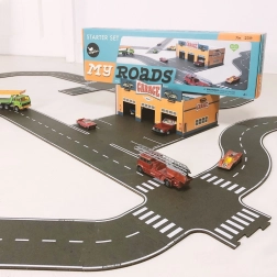 Das MyRoads Starter-Set bietet Kindern unendliche Möglichkeiten zum Streckenbau mit einer Länge von bis zu 700 cm. Die Teile aus robustem Material auf Basis von recyceltem Holz lassen sich nahtlos verbinden und behalten ihre Form, sodass Kinder Städte, Rennstrecken und Verkehrsknotenpunkte gestalten können. Das zeitlose Retro-Design begeistert kleine wie große Baumeister.