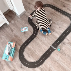 Verzahnte Teile halten fest zusammen und bieten eine stabile Fahrfläche. Kinder können die Strecke selbst aufbauen und ein geschmeidiges Fahrerlebnis genießen.