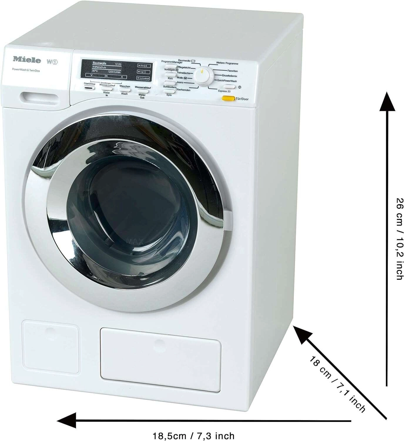 Diese lizenzierte Kinderwaschmaschine MIELE ahmt ein echtes Gerät detailgetreu nach und motiviert Kinder, Fantasie und Feinmotorik zu entwickeln. Dank vier realistischer Programme – Einlassen, Waschen, Ablassen und Schleudern – haben kleine Helfer viel Spaß. LED-Kontrollleuchte und realistische Geräusche der einzelnen Phasen machen jedes Spiel zum Erlebnis.