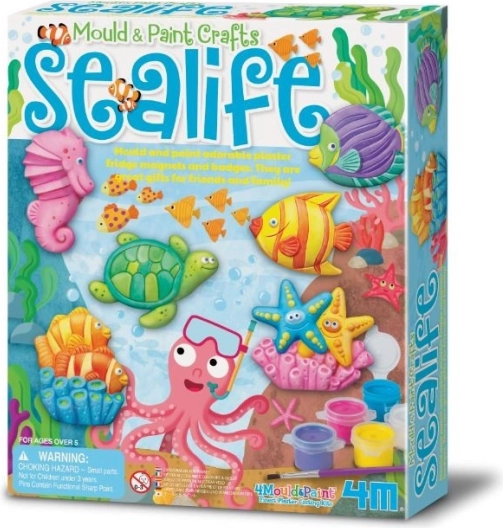 Lieben Sie Basteln und Malen? Dieses kreative Set ermöglicht es Ihnen, niedliche Meeresbewohner – Fische, Rosetten, Seepferdchen oder Schildkröten – ganz einfach herzustellen. Gießen Sie sie aus Gips, verzieren Sie sie mit den beiliegenden Farben und gestalten Sie originelle Kühlschrankmagnete oder stylische Broschen/Pins.