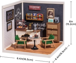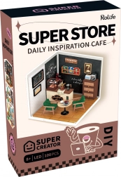 Treten Sie ein in die Welt des Mini-Cafés, in der jedes Detail erfreut – von Stühlen und Tisch bis hin zur Kaffeemaschine und Wanddekoration. Das Set wird zerlegt geliefert und ergibt nach dem Aufbau eine eindrucksvolle Szene, die jedes Regal, jeden Tisch oder jede Vitrine verschönert. Die LED-Beleuchtung verleiht dem Modell eine einzigartige Atmosphäre.