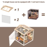 Für eine einzelne Miniatur empfehlen wir 2× Tür und 1× Dach B. Bei einer größeren Anordnung mit mehreren Häuschen wählen Sie so viele Türen und Dächer, wie ungeschützte Seiten Ihrer Installation vorhanden sind. Dank der Kompatibilität mit den Modellen DW001 bis DW012 sind Erweiterbarkeit und Modularität gewährleistet.