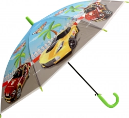 Wählen Sie aus mehreren Varianten an Farben und Designs mit Autos. Der Regenschirm hat sichere Spitzenabschlüsse und einen ergonomischen Griff für einen sicheren Halt.