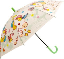 Der verspielte und leichte Regenschirm mit Einhornmotiv ist ein großartiger Begleiter für regnerische Tage. Die kompakte Größe von 50 cm ist ideal für Kinder, der Griff liegt angenehm in der Hand und die Konstruktion ist für einfaches Öffnen ausgelegt.
