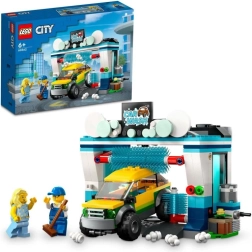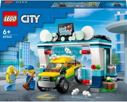 - Spielzubehör: kompaktes Auto, Reifenpumpe, 2 Minifiguren (Fahrer und Waschanlagenmitarbeiter).