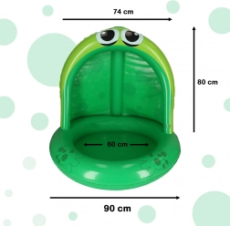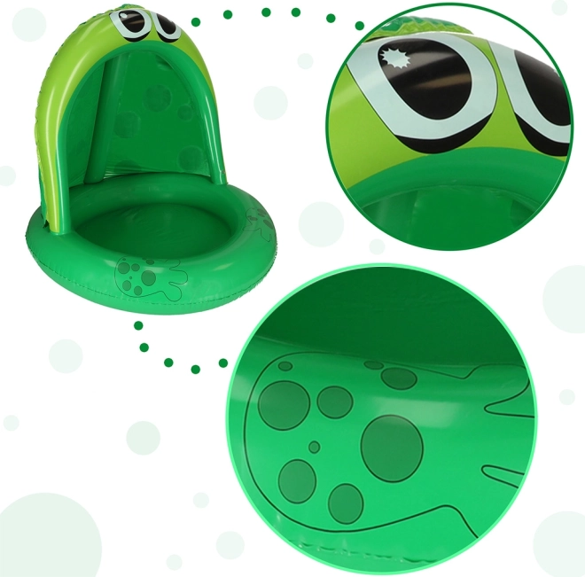 Das lebendige grüne Design mit großen Froschaugen und aufblasbaren Beinen verleiht ein authentisches Aussehen. Zudem schützt das clevere Dach die Kinder vor schädlicher UV-Strahlung, was stundenlangen sicheren Wasserspaß garantiert.